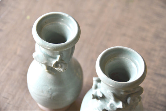 Vintage Sage Green Celedon Vase Set, China