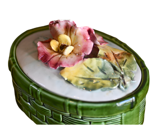 Majolica Floral Lidded Container, Conteneur en majolique