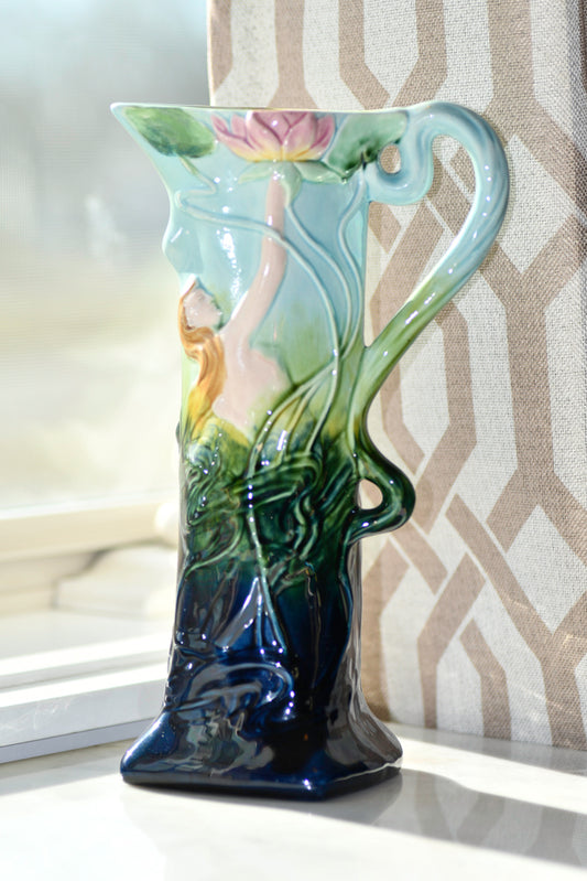 Majolica Art Nouveau Style Decorative Vase or Ewer