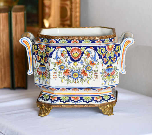 French Faience Jardiniere, 9”, Decorative Antique Planter