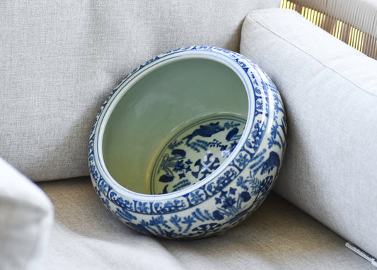 Blue and White Large Porcelain Bowl with Fish