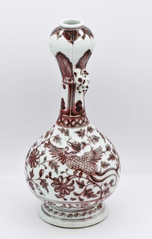 Red Underglaze Phoenix Vase, 12"