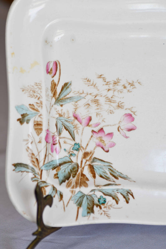 French Longwy Oval Floral Serving Dish, 10"