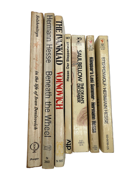 Vintage Paperback Bookshelf Display Lot, Hermann Hesse, Solzhenitsyn