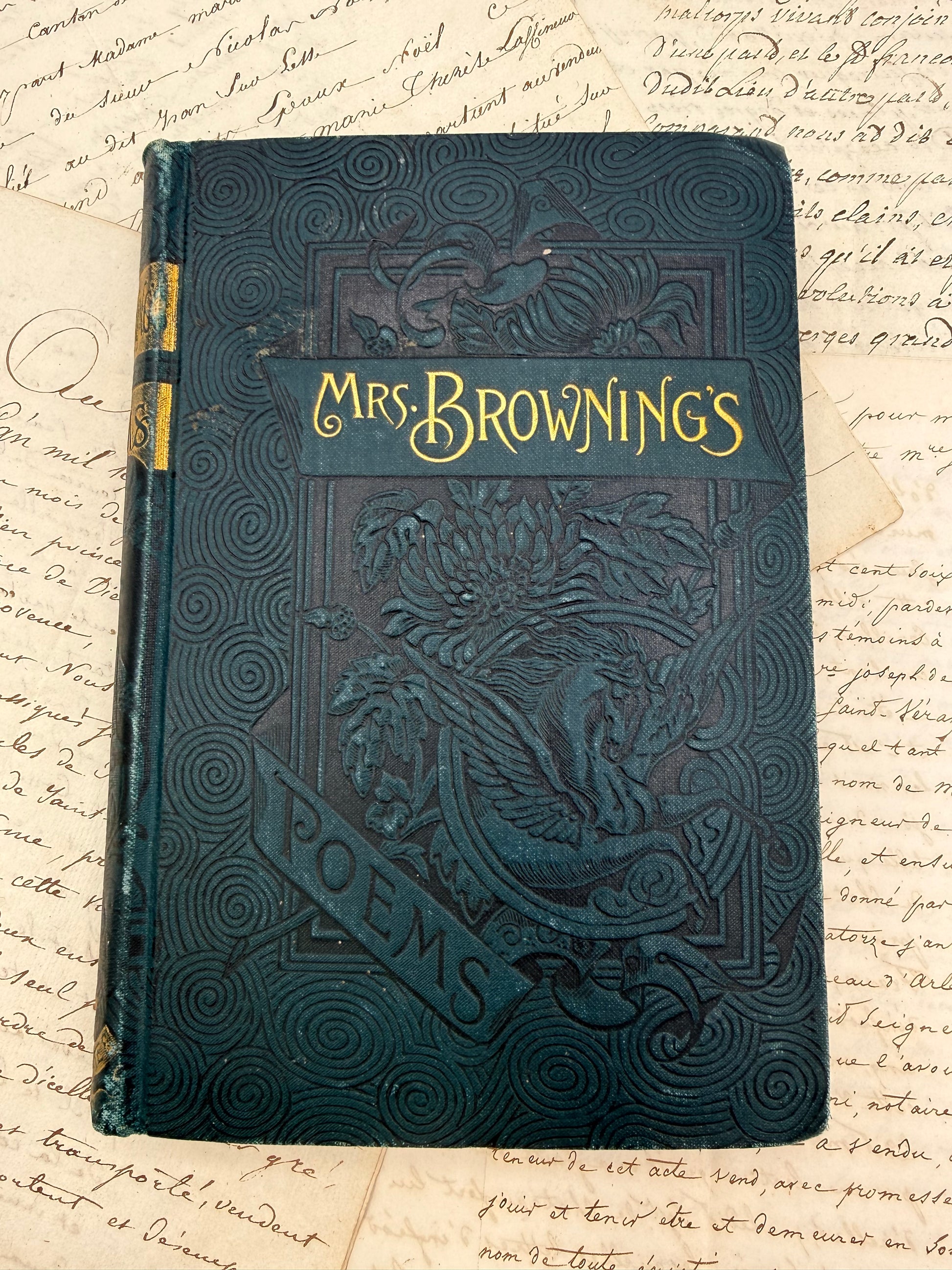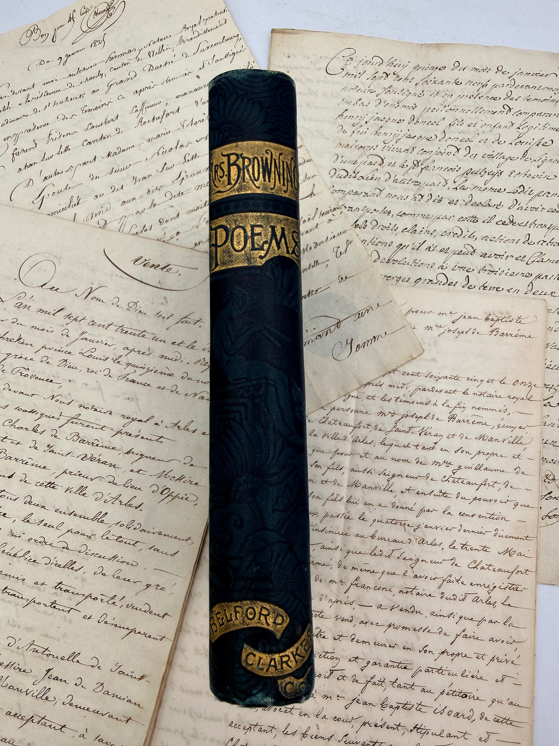 A late 19th Century edition of The Poetical Works of Elizabeth Barrett Browning. Published by Belford, Clarke most likely in the 1880’s. Complete in one volume. There are a few bubbled areas on the back cover. There is a small blemish in the cloth near the upper cover and backstrip connection. The pages are good. There is gilt on the foredge. 624 pages.
