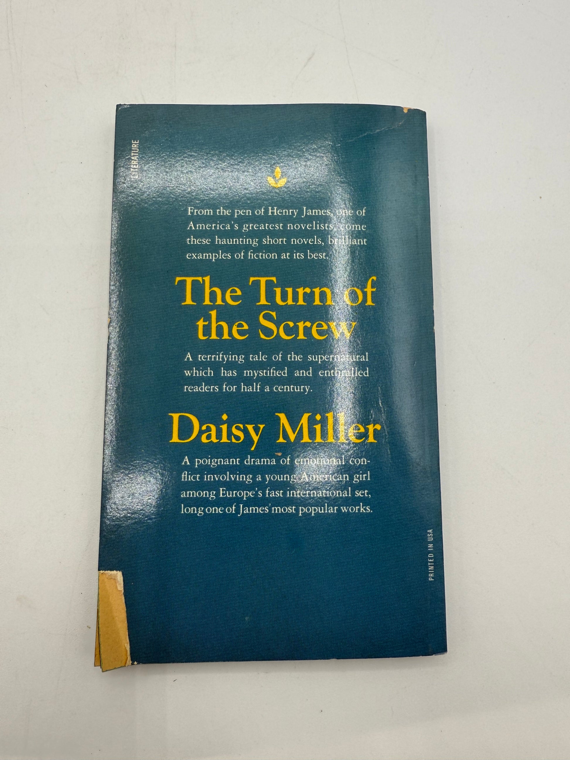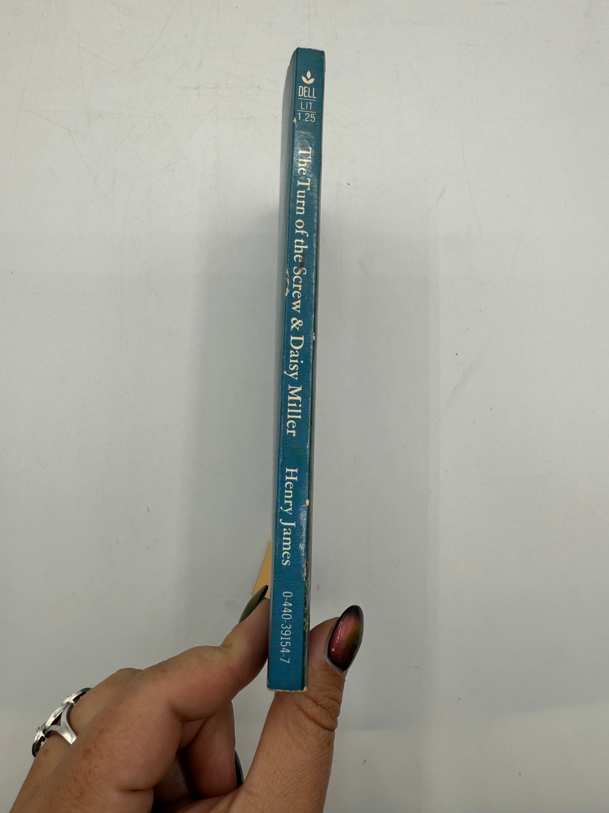 The Turn of the Screw and Daisy Miller by Henry James. Paperback. A Laurel Edition by Dell Printing. Copyright October 1977. There is a chip in the lower back cover. The pages are crisp with moderate to heavy tanning throughout. Please see photos for condition. The lower corners of the last few pages are creased. Size: 7", 191 pages.