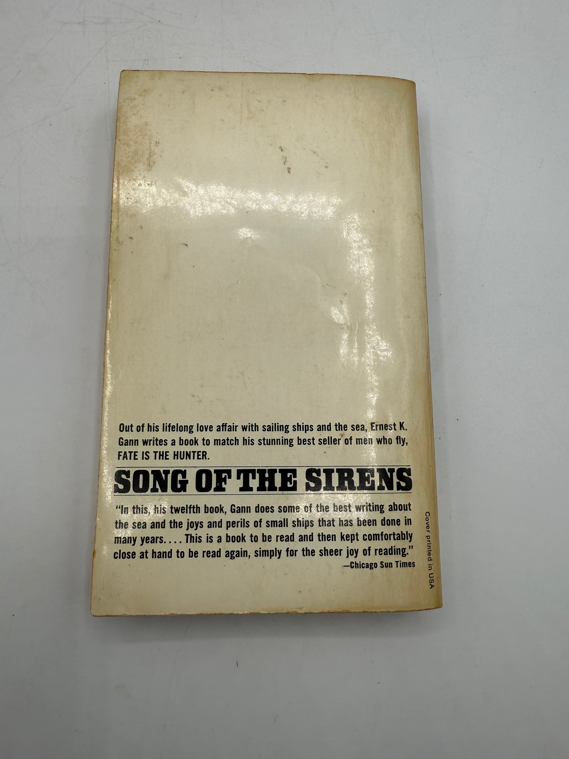 Song of the Sirens by Ernest K Gann. A book of the sea. Paperback. Copyright August, 1969. There is a penned signature on the inside cover. Please see photos for condition. The pages are soft and intact. Size: 7". 289 pages.