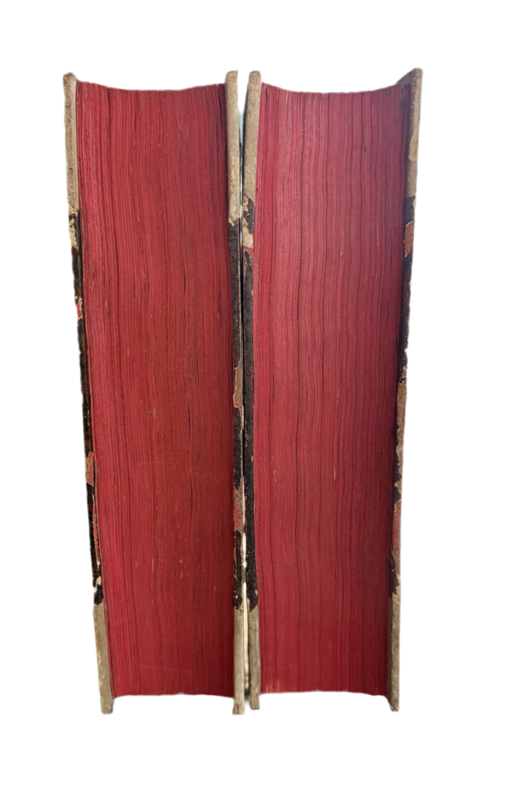 Two antique hardback books with quarter vellum, "C. Cornelli Taciti Opera" ex recensione Joh. Augusti Ernesti. Volumes 1-4 complete in two volumes. Published by E Prelo Bartlett et Newman, Oxonii. Copyright 1812. {Title: "The Tacitus Works of C. Cornell" from the review of Joh. Augustus Ernesti}. Latin language. The covers have a dark brown and maroon marble paste-on and marble endpapers. The gilt design on the backstrip is darkened. There is some soiling on the covers. The pages are crisp and intact with red outer edges. There is mild page tanning throughout. There are some areas of heavier foxing. There is a chip on one marble cover paper on the left edge. There is a small private collection sticker on the left endpaper with a name in cursive. Size: 8.65 x 5.65", 784 + 684 pages.