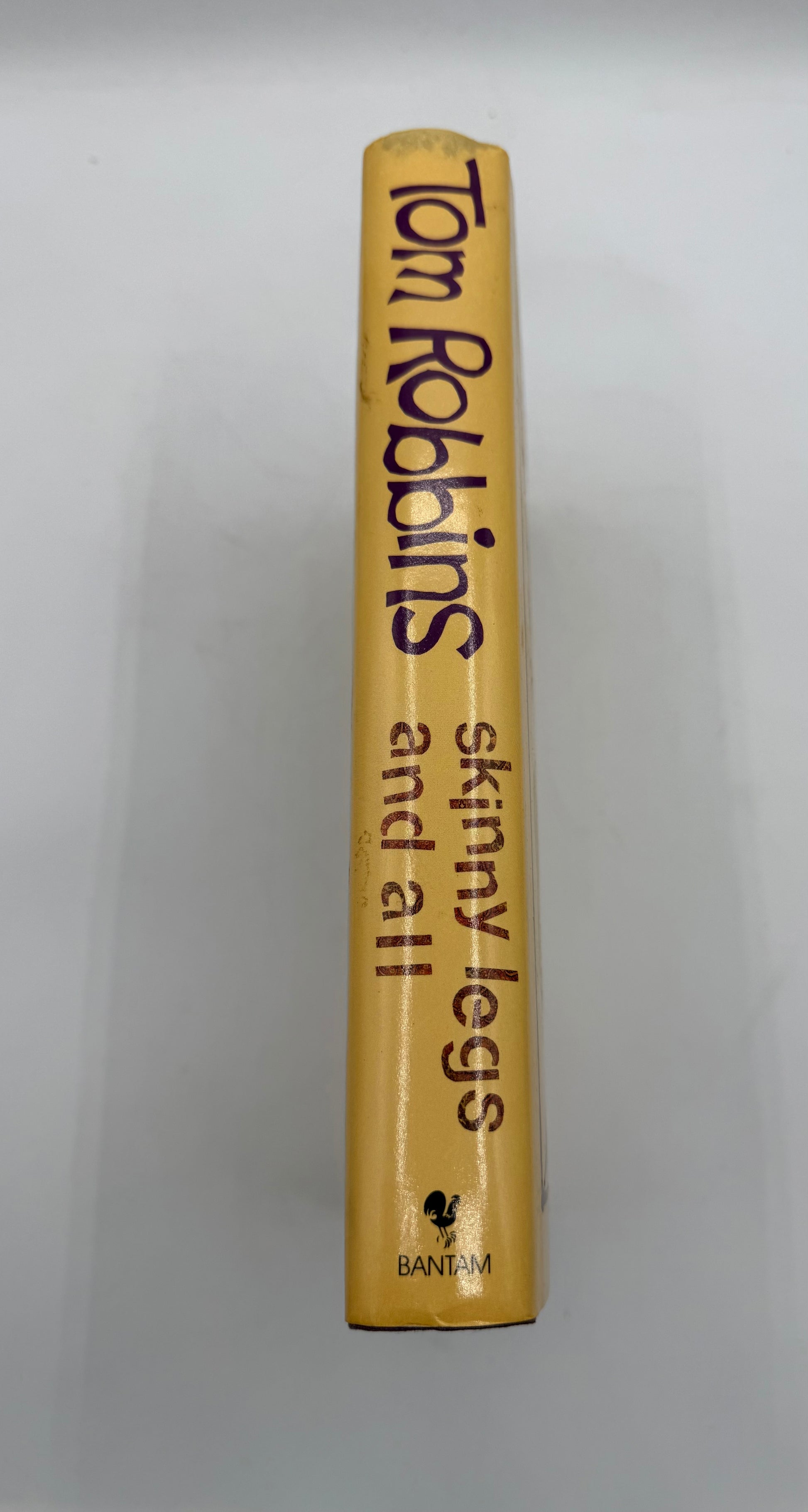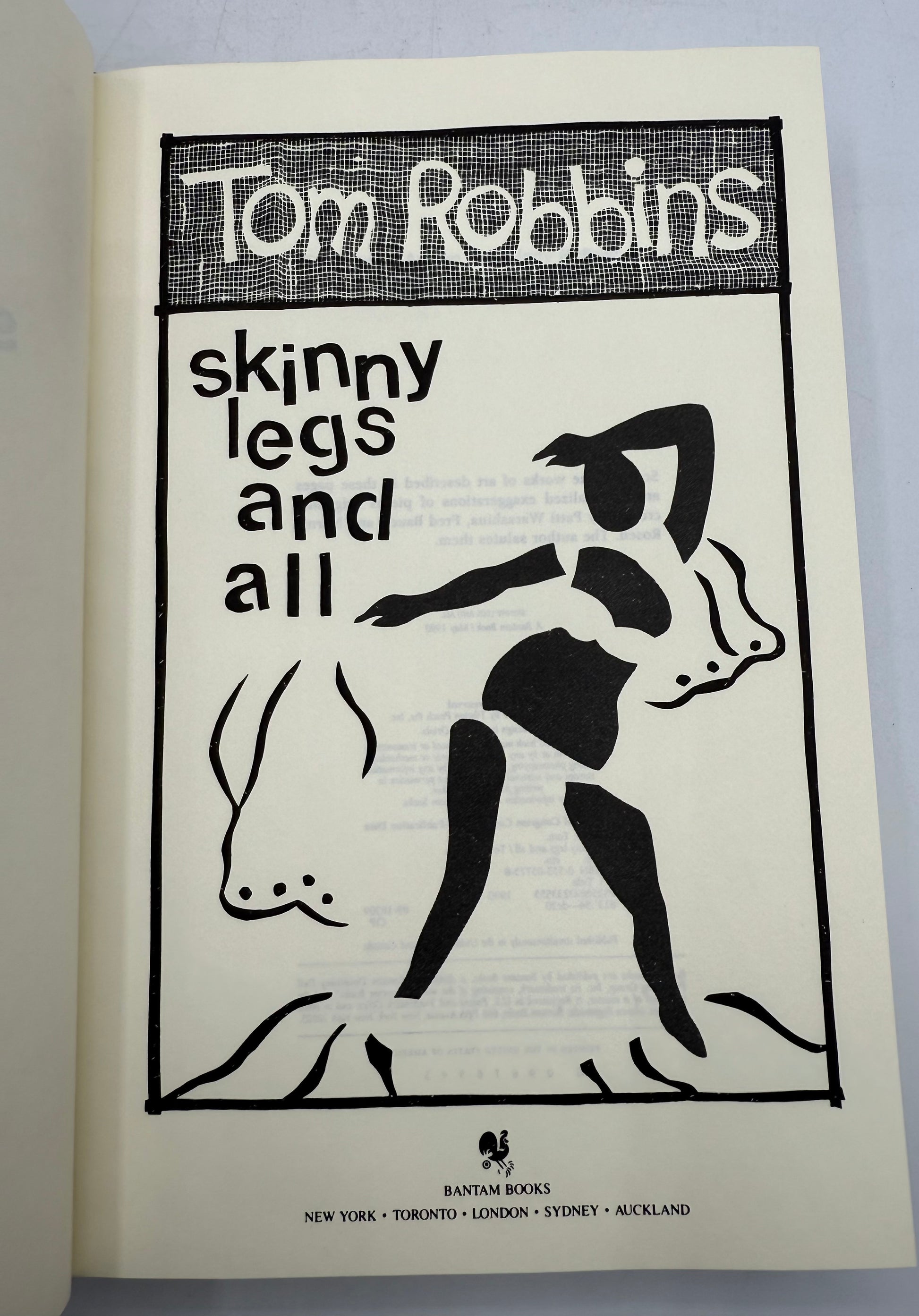 Skinny Legs and All by Tom Robbins. Published by Bantam Books. Copyright May 1990. Hardcover with dust jacket. There is a signature on the right endpaper and stamp. The pages are crisp and white throughout. Size: 9.5", 422 pages.