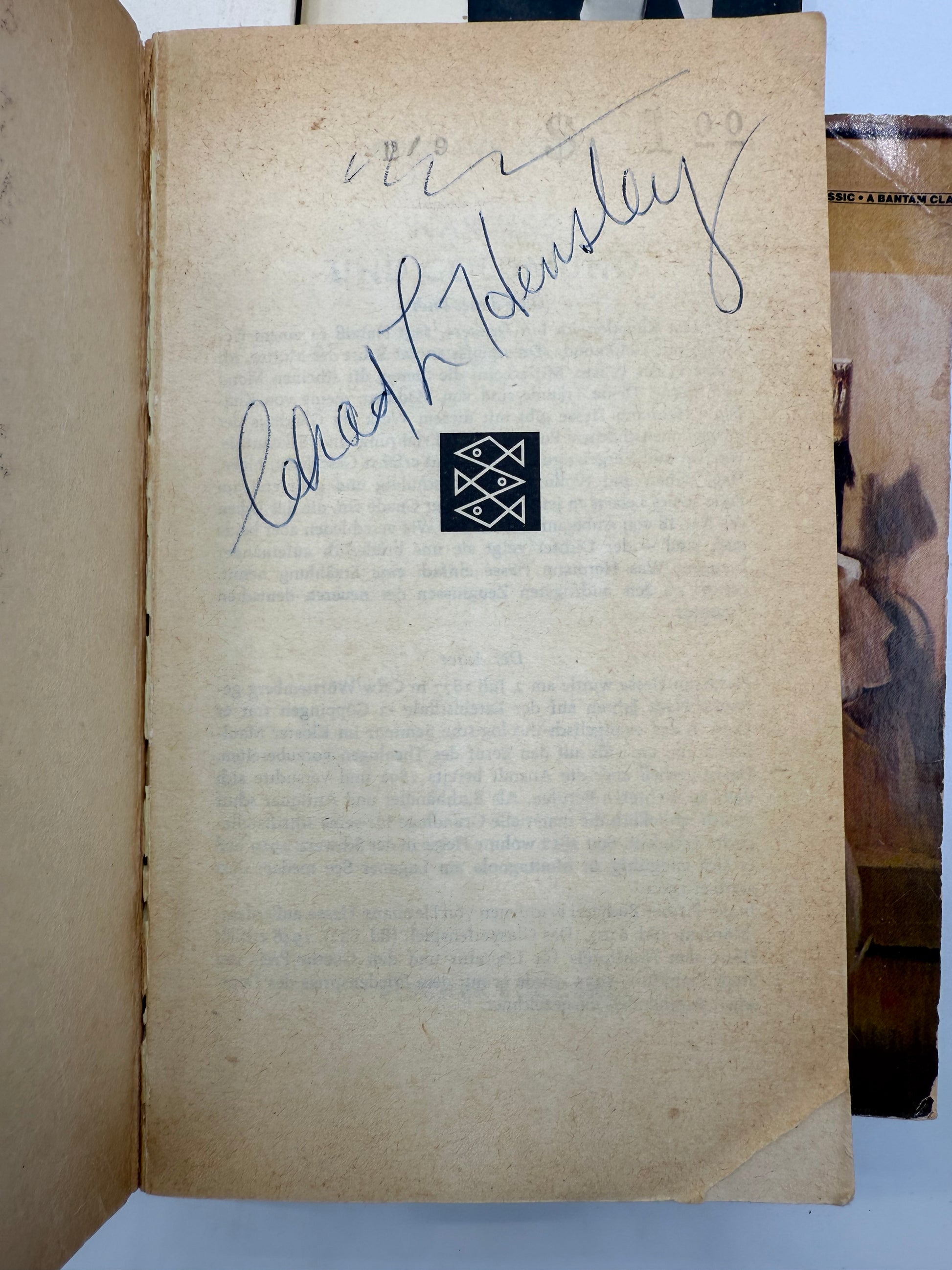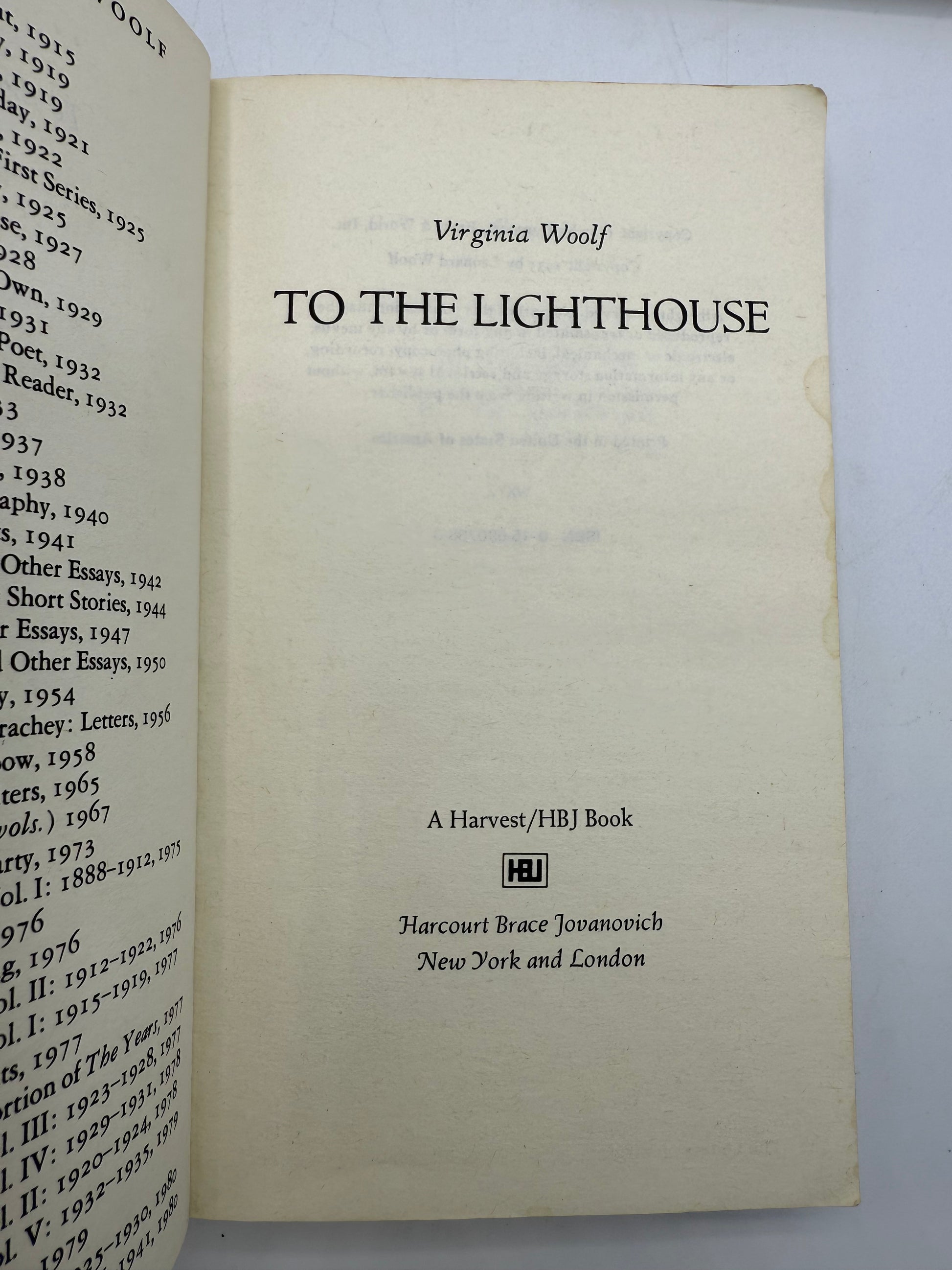 A set of vintage paperbacks in fair to good condition for home or business bookshelf display, filler, projects, reading or collecting. The paperbacks have mostly white or off-white covers with one being blue. Titles include: The Quare Fellow and The Hostage by Brendan Behan; To the Lighthouse by Virginia Woolf; The Arrogance of Power by Senator J William Fullbright; The House of Mirth by Edith Wharton; Modern Science and Modern Man by James B Conant; Hermann Hesse's Narziss und Goldmun (Death and the Lover) in German language. Four of five books have light penned notations which may be a penned signature on the inside cover, light notations in the margin or underlines in the text. Modern Science and The Quare Fellow are in good condition. The overall book set size is: 7.25 T x 4" W x 4.25" D. Please see photos for additional condition information.