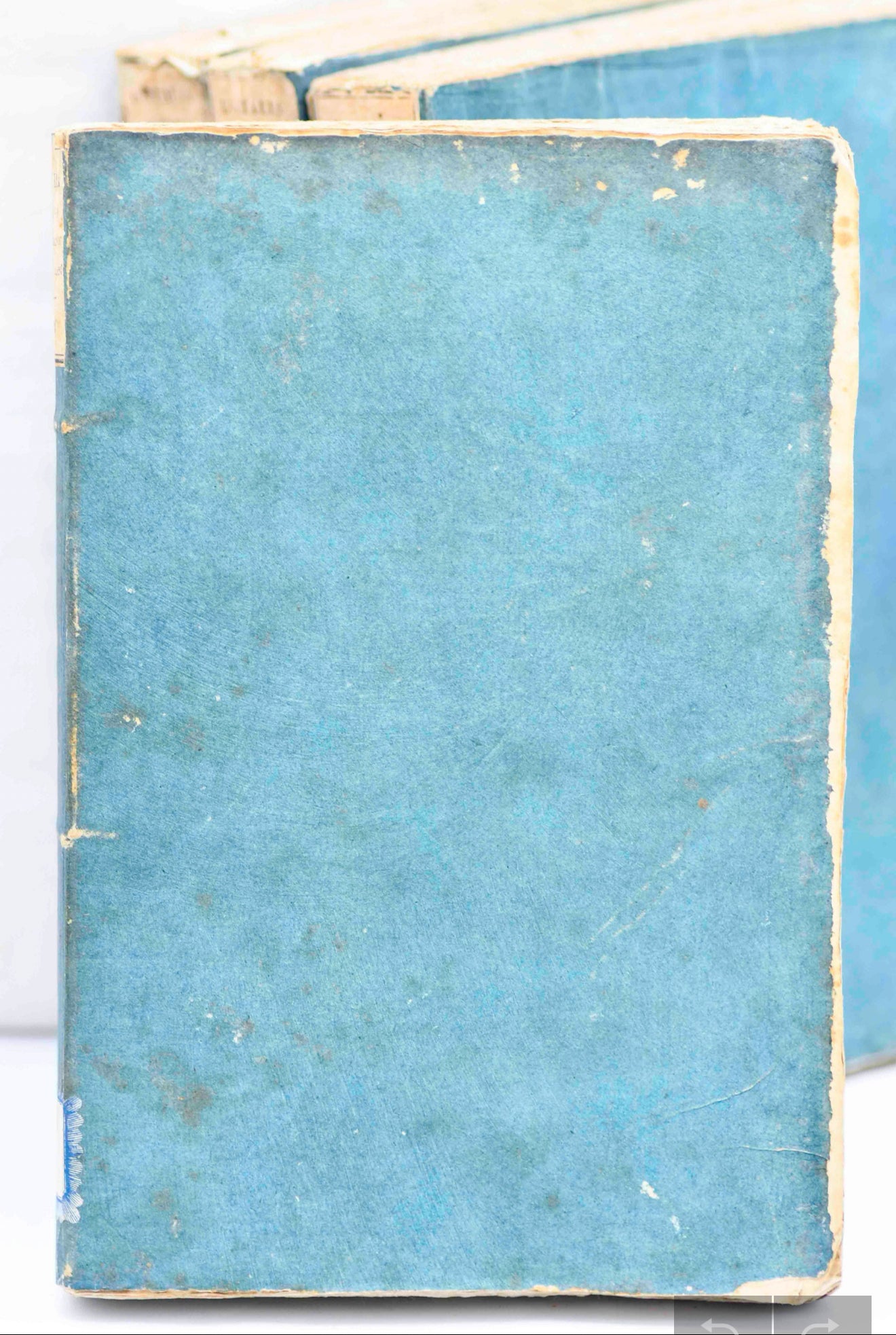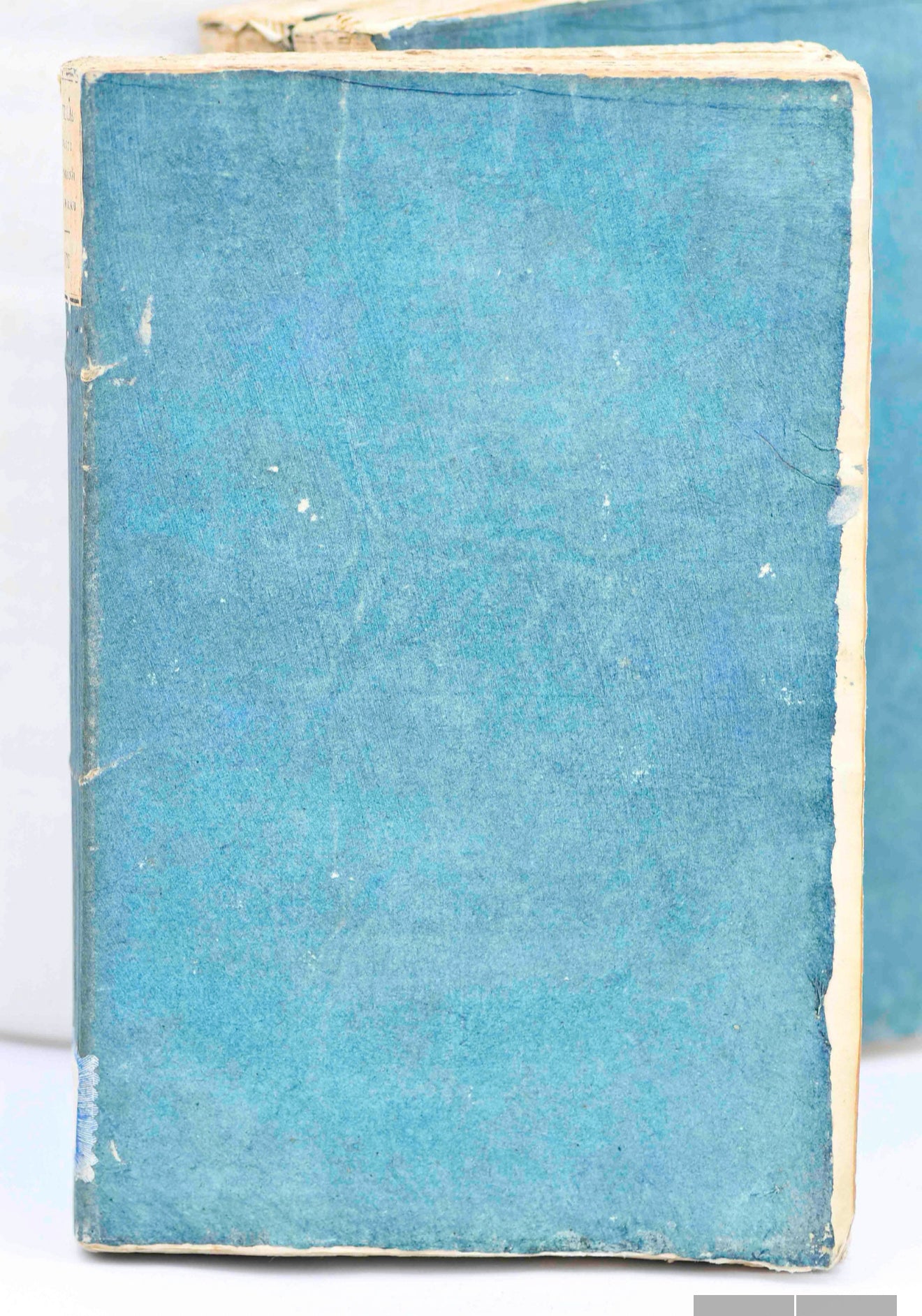 Volume 1: There are a few small white discoloration spots on the cover. The upper label on the backstrip is curling downward slightly. The back cover has a 1-inch soil or discoloration spot near the left edge. The pages are lightly textured and white. There is a small dark brown spot in the margin on page 1-2. There are sections of moderate dark foxing throughout, but many pages are white with mild tanning. 248 pages.